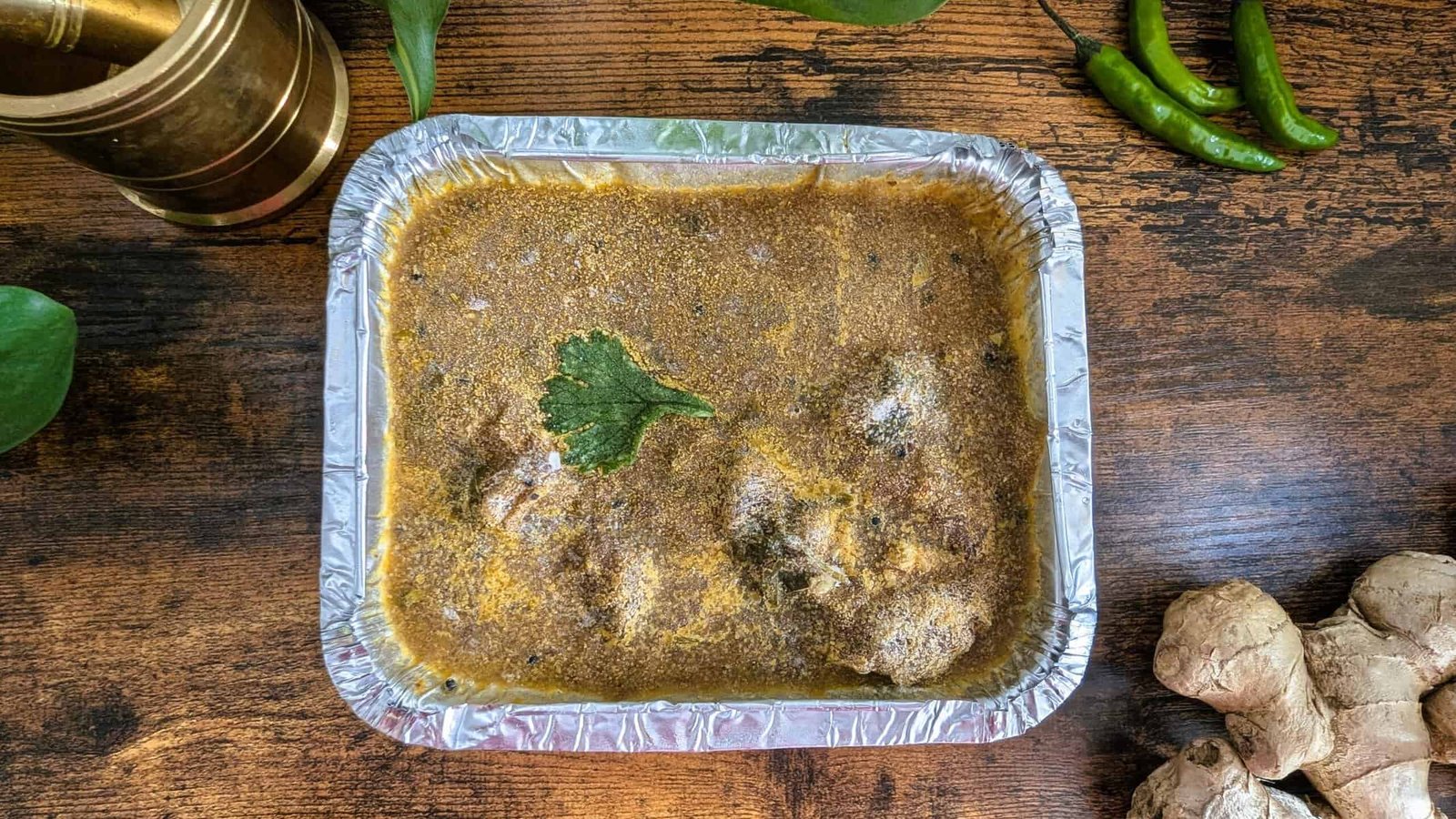 Lamb knuckle w/ potatoes in a mild spicy coconut tomato masala gravy topped w/ fresh coriander