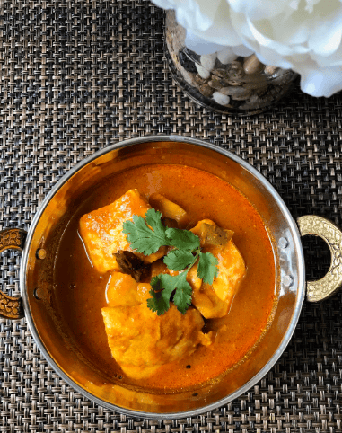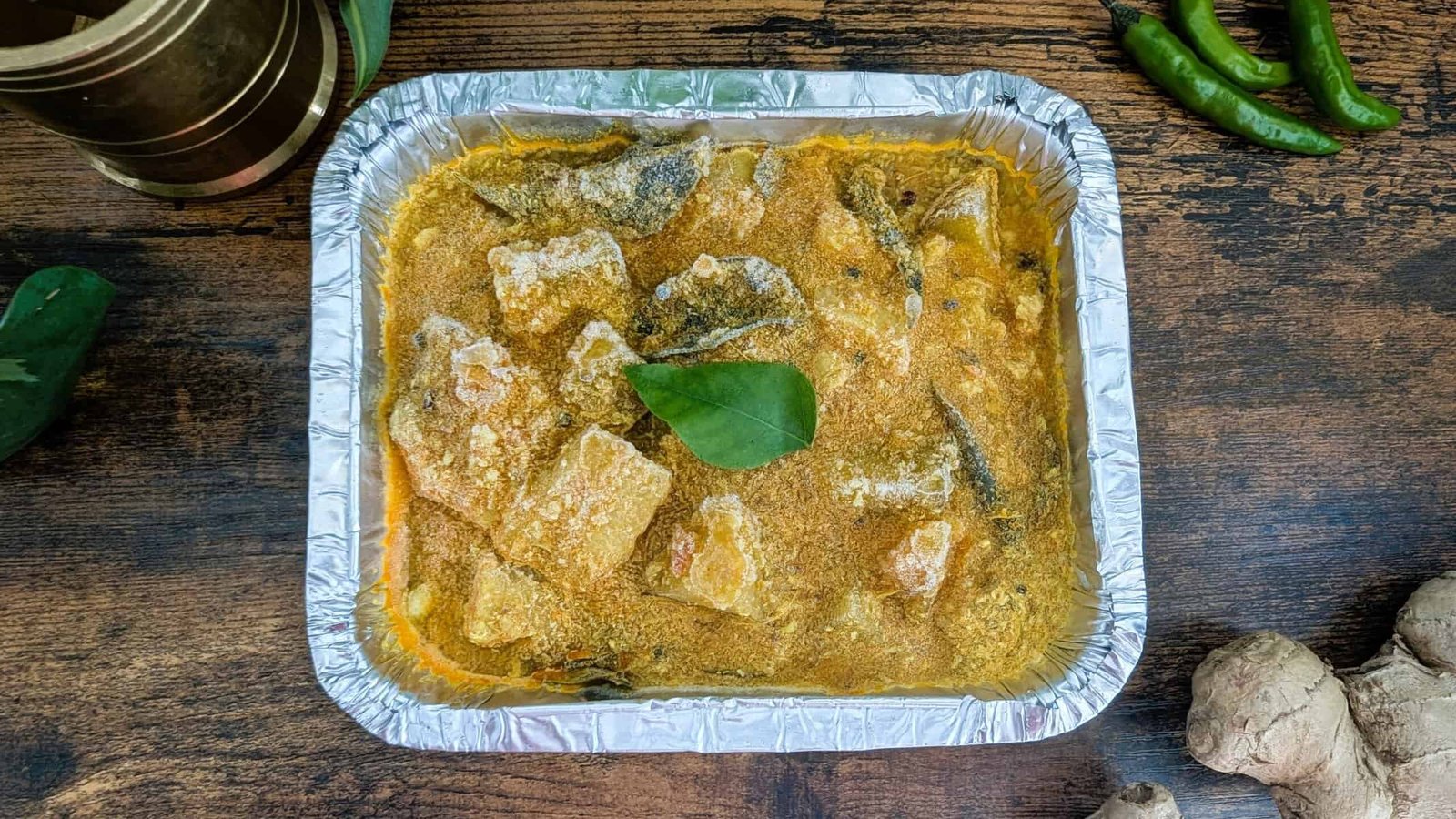 Swordfish & green mango pieces slow cooked in a spicy ginger & coconut gravy
