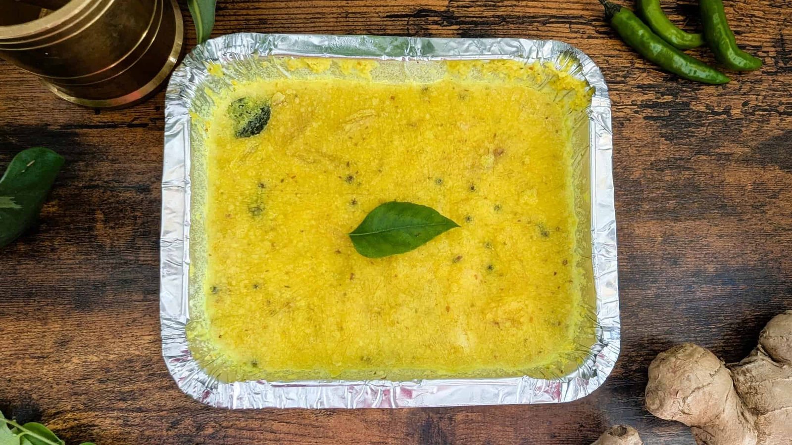 Pineapples in a sweet, sour & spicy ginger, coconut, yoghurt gravy w/ fresh curry leaves
